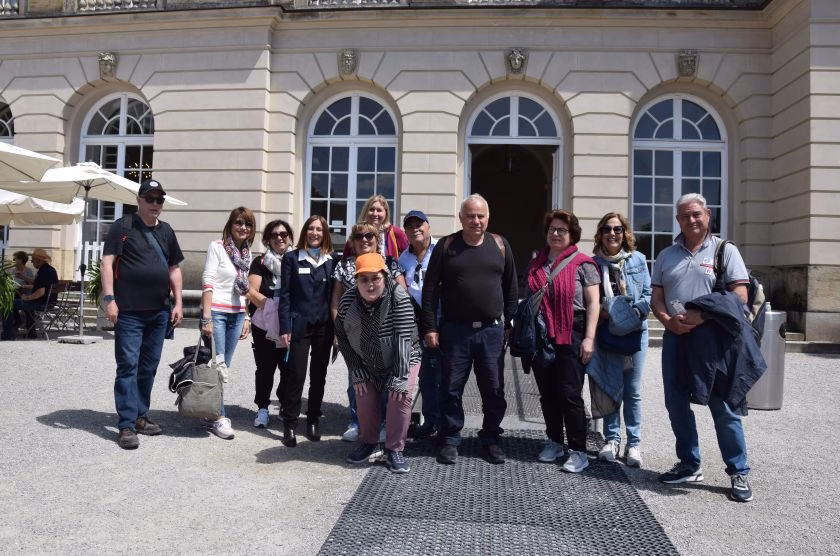 La “Sala ad occhio di bue” per la forma delle finestre con la statua equestre che indica il centro del castello, la “Camera da letto da parata” al centro del castello sontuoso omaggio a Re Luigi XIV, la “Sala da pranzo” con il famoso tavolo che si apparecchia da se (“Tischlein deck-dich”) e con lo stupendo lampadario con ben 108 candeline, il più costoso e pesante mai realizzato a Meissen, la “Sala da Bagno” con la vasca che poteva contenere fino a 60 mila litri d’acqua con lo scheletro in acciaio a dimostrazione, ancora una volta, della propensione di Ludwig alle innovazioni tecnologiche e la fantasmagorica “Galleria degli Specchi” che il suo committente contemplava alla luce delle oltre 2 mila candele ha letteralmente incantato e affascinato uomini e donne del gruppo fino a farli ritornare indietro nel tempo guidati dalla suadente voce della guida turistica!
