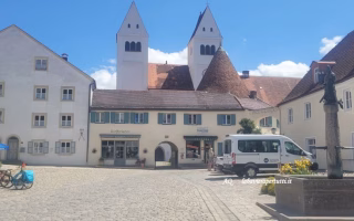Füssen è una graziosa cittadina bavarese di circa 15 mila abitanti a ridosso delle Alpi, nell’incontaminata regione dell’Allgau, bagnata dalle acque del fiume Lech; curata ed ordinata ha un centro storico (ovviamente pedonale, “Fussgängerzone”) ricco di case variamente decorate, con eleganti edifici e con un dedalo di vie pittoresche e di grande fascino!