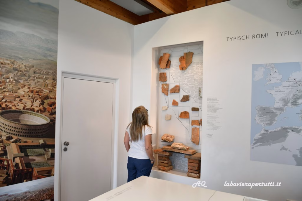 Una serie di pannelli informativi in sequenza descrivono il Limes nelle molteplici aree geografiche dove fu eretto e precedono la prima sezione tematica che prende il nome di “Typisch Rom”.