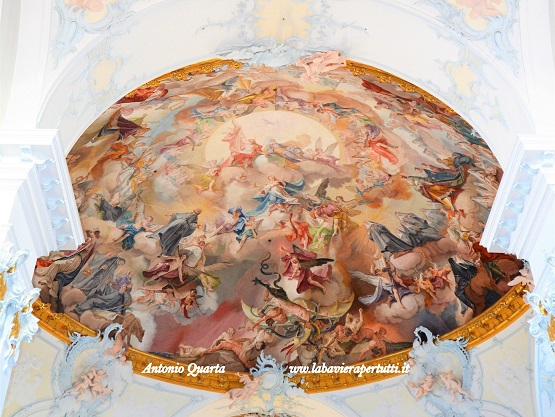 Il grande affresco centrale predominante nella navata è opera dell’artista Günther e fu elaborato nel periodo 1761-63. Esso rappresenta “L’apoteosi dell’Ordine di San Benedetto”.